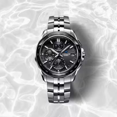 OCEANUS Mantaより、引き締まった表情のブラックダイアルを採用したモデルです。