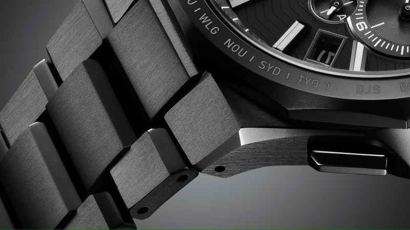 サファイアガラスには両面反射防止コーティングを、ケース、ベゼル、バンドにはDLCコーティングを施し、黒色で統一されたデザインが大人の上質さと洗練さを表現しています。