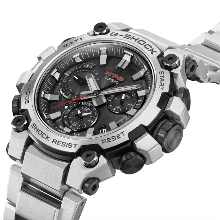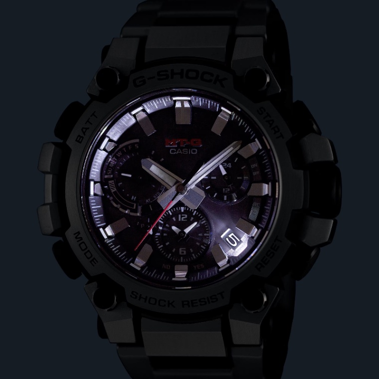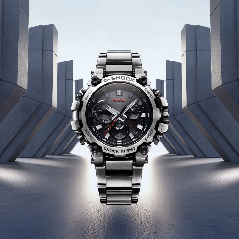 メタル素材とG-SHOCKの起源である樹脂素材を融合して革新的な構造美を追求するMT-Gシリーズ。