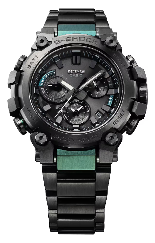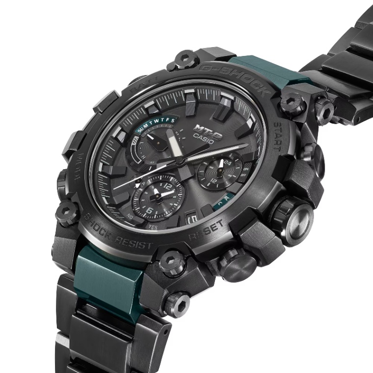 メタル素材とG-SHOCKの起源である樹脂素材を融合して革新的な構造美を追求するMT-Gシリーズ。