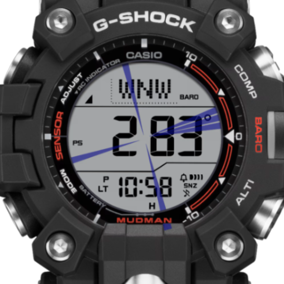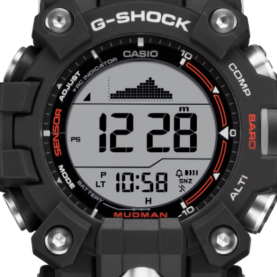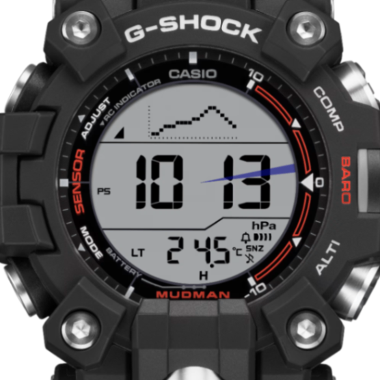 過酷な自然環境に立ち向かう男たちをサポートするG-SHOCK MASTER OF Gシリーズから、マッドレジスト構造を搭載したMUDMANのトリプルセンサーモデルです。