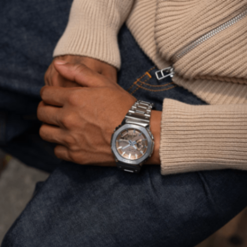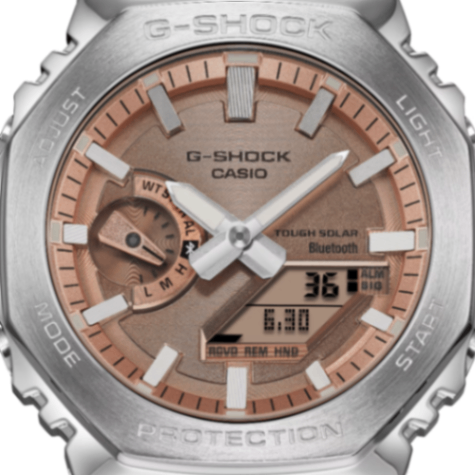G-SHOCK初代モデルDW-5000Cのコンセプトを受け継いで開発されたアナログ「2100」シリーズのフルメタルモデルです。