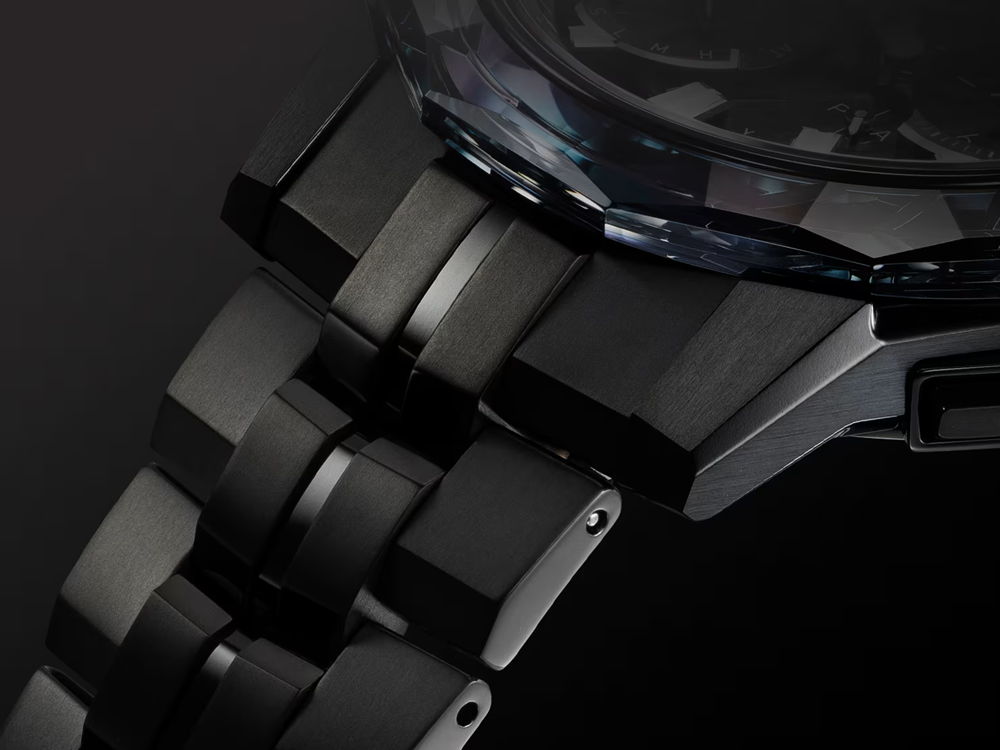 月の光に照らされた夜の海を、DLC処理したチタン外装と江戸切子のサファイアガラスベゼルで表現しました。